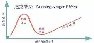 心理学上有个著名的邓宁-克鲁格效应,又称达克效应。大意是,人很容易对自我产生认知偏差,最简单来说,就是会过于高估自己。达克效应的曲线图: