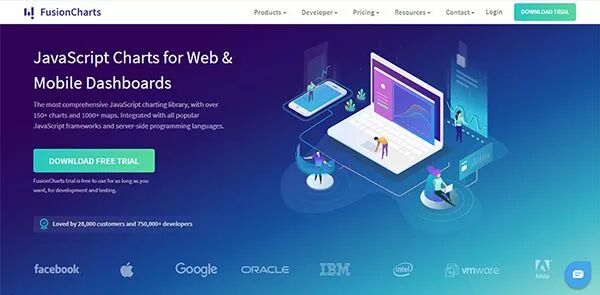 FusionCharts是一款不错的交互式图表库,它带有数百个开箱即用的图表。这些图表不但接受JSON和XML数据格式,而且能够通过HTML5/SVG或VML予以呈现。