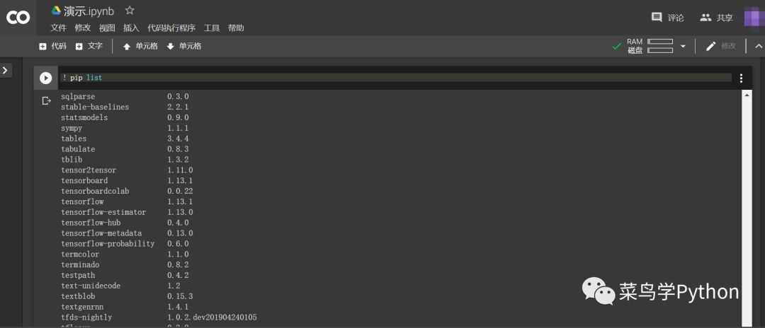 可以看到,colab默认安装了大量的Python第三方库,就数据科学方面的库而言,colab的自带库应该会比Anaconda更加完善。