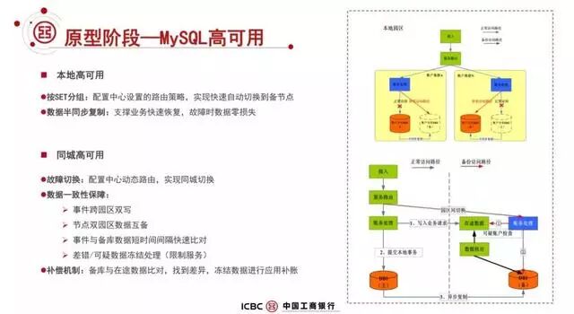 在原型阶段,当时主流是MySQL5.6、5.7才刚出来;对于高可用要求,行里的应用是要做到同城切换,上海两个园区要做到RPO是0,RTO非常小,同时异地北京有一个灾备中心,就是两地三中心。