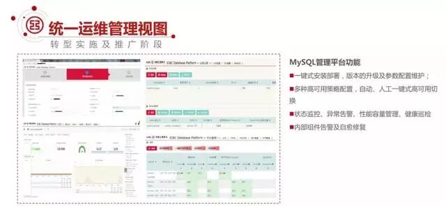 我们通过这样一个统一的运维管理平台,把所有的节点都纳入进来了,实现一键式的安装、版本的升级、参数的配置。并且实现了多种高可用策略配置,包括自动、人工一键式切换。