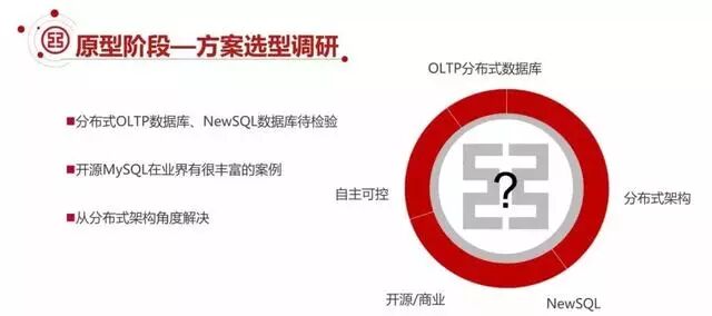 NewSQL数据库方案,是很多的互联网企业或者一些小型企业有所使用的,但是我行在选择技术的时候是非常谨慎的,以及要做非常多验证,在当时并不符合我们系统设计的考量点。