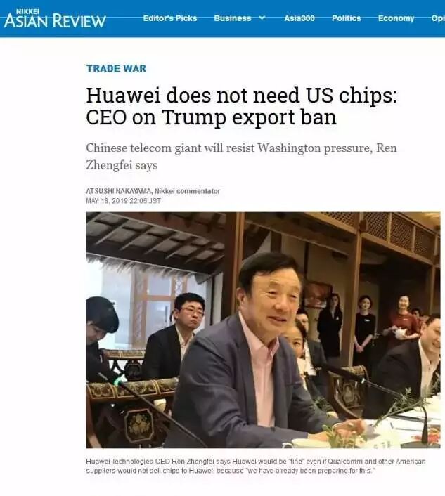 据多家媒体报道,华为创始人兼总裁任正非在接受日本媒体采访时首度回应美国的禁令: