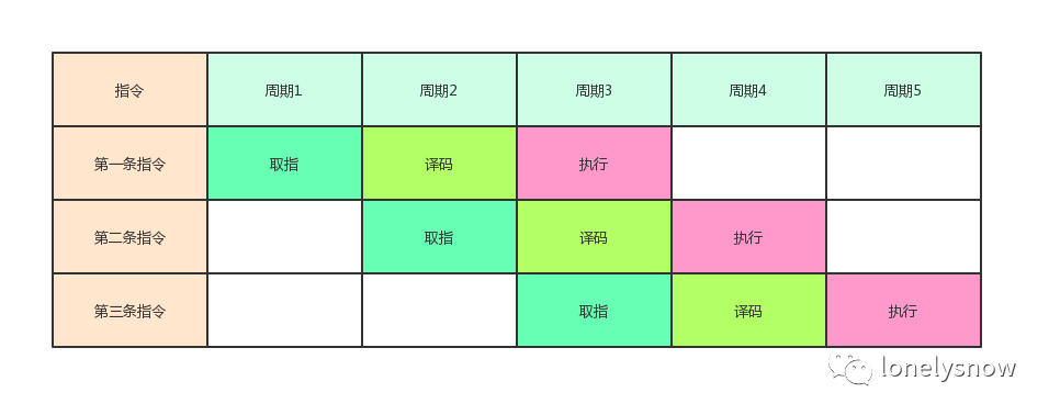 下面我们接着聊 CPU 的指令执行。取址,译码,执行,这是一个指令的执行过程,所有指令都会严格按照这个顺序执行,但是多个指令之间其实是可以并行的,对于单核 CPU 来说,同一时刻只能有一条指令能够占有执行单元运行,这里说的执行是 CPU 指令处理 (取指,译码,执行) 三步骤中的第三步,也就是运算单元的计算任务,所以为了提升 CPU 的指令处理速度,所以需要保证运算单元在执行前的准备工作都完成,这样运算单元就可以一直处于运算中,而刚刚的串行流程中,取指,解码的时候运算单元是空闲的,而且取指和解码如果没有命中高速缓存还需要从主存取,而主存的速度和 CPU 不在一个级别上,所以指令流水线 可以大大提高 CPU 的处理速度,下图是一个3级流水线的示例图,而现在的奔腾 CPU 都是32级流水线,具体做法就是将上面三个流程拆分的更细。