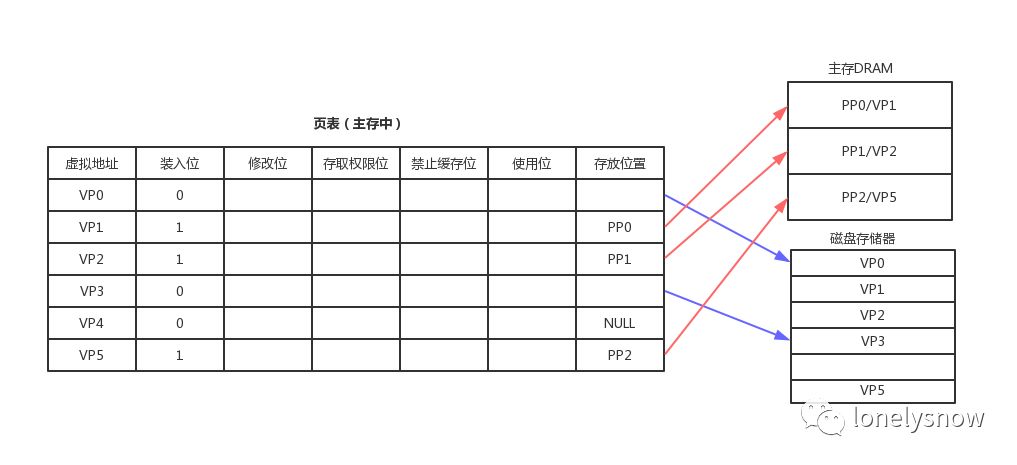 装入位 表示对于页是否在主存,如果地址页每页表示,数据还在磁盘