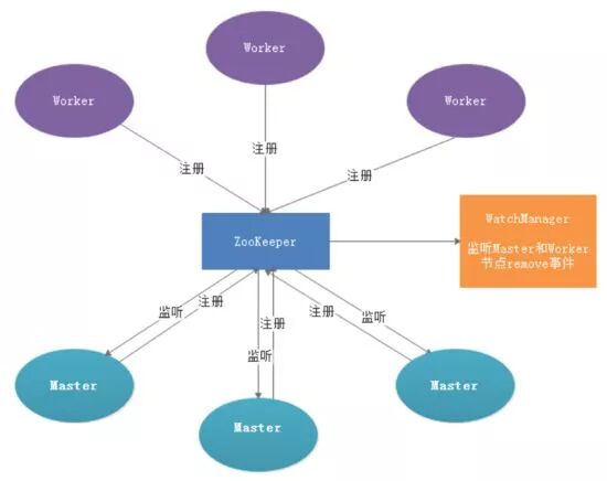 注意:由于” 网络抖动”可能会使得节点短时间内失去和ZooKeeper的心跳,从而发生节点的remove事件。对于这种情况,我们使用最简单的方式,那就是节点一旦和ZooKeeper发生超时连接,则直接将Master或Worker服务停掉。