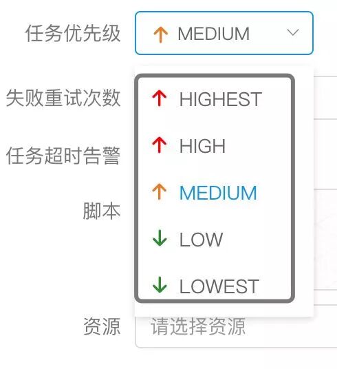 任务的优先级也分为5级,依次为HIGHEST、HIGH、MEDIUM、LOW、LOWEST。如下图