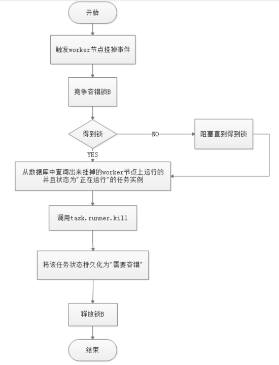 ZooKeeper Master容错完成之后则重新由EasyScheduler中Scheduler线程调度,遍历 DAG 找到”正在运行”和“提交成功”的任务,对”正在运行”的任务监控其任务实例的状态,对”提交成功”的任务需要判断Task Queue中是否已经存在,如果存在则同样监控任务实例的状态,如果不存在则重新提交任务实例。