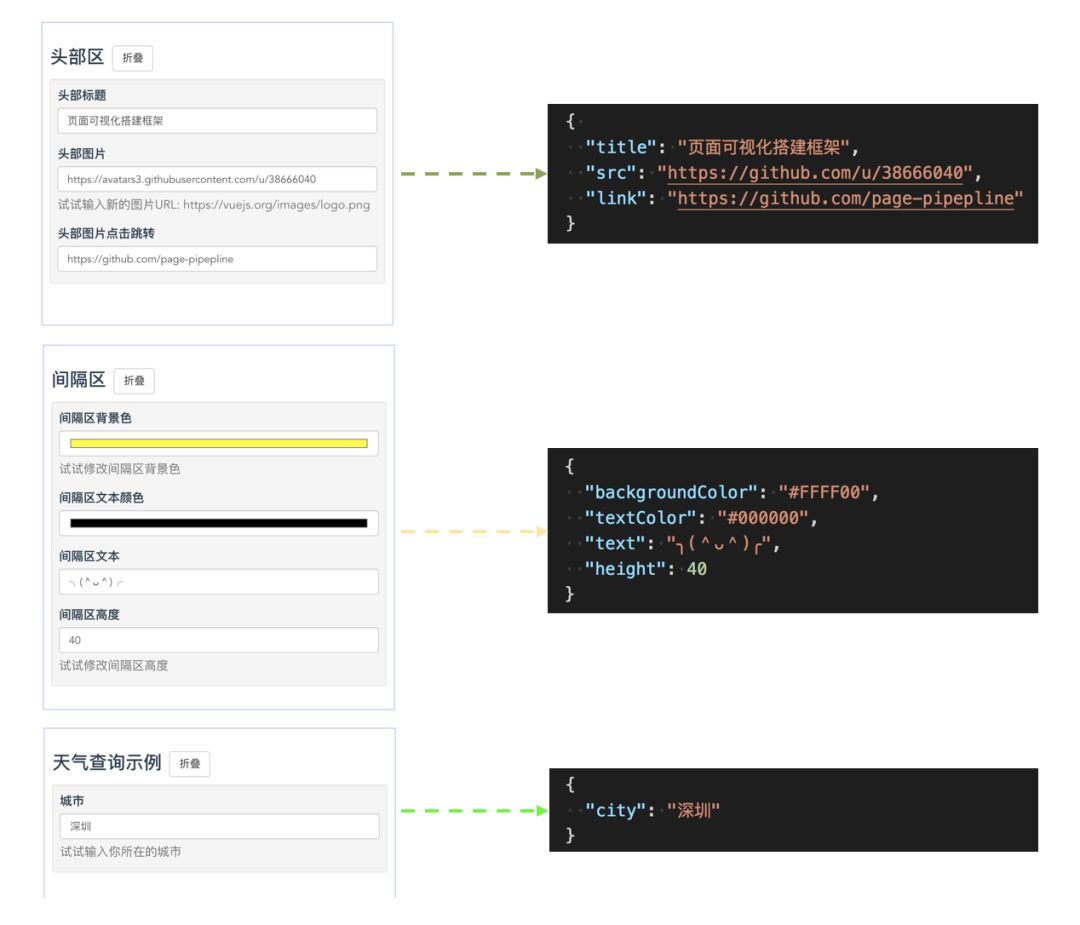 页面可视化搭建工具的主要使用人员是运营/产品, 如果让运营/产品人员直接编辑文本格式的组件配置数据, 操作不友好并且容易出错. 需提供可视化的编辑方式 — 使用 Form 表单来填入配置数据. Form 表单是页面中数据交互的基本形式, 非开发人员使用也没有技术门槛. 使用配置表单来填入配置数据有2个好处: