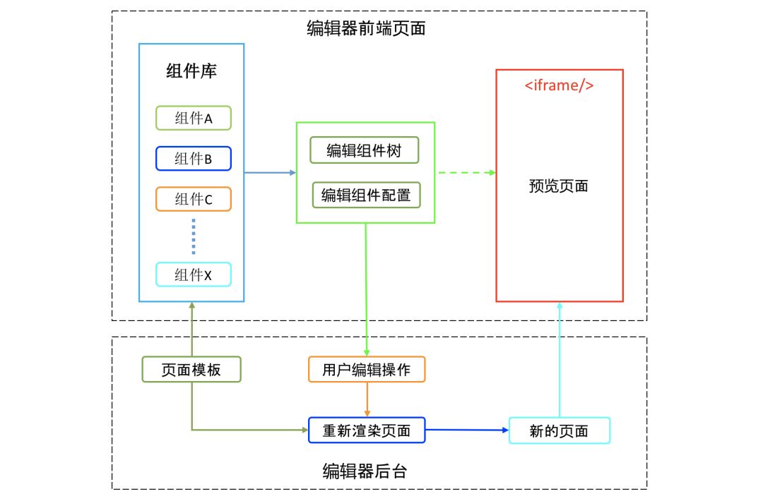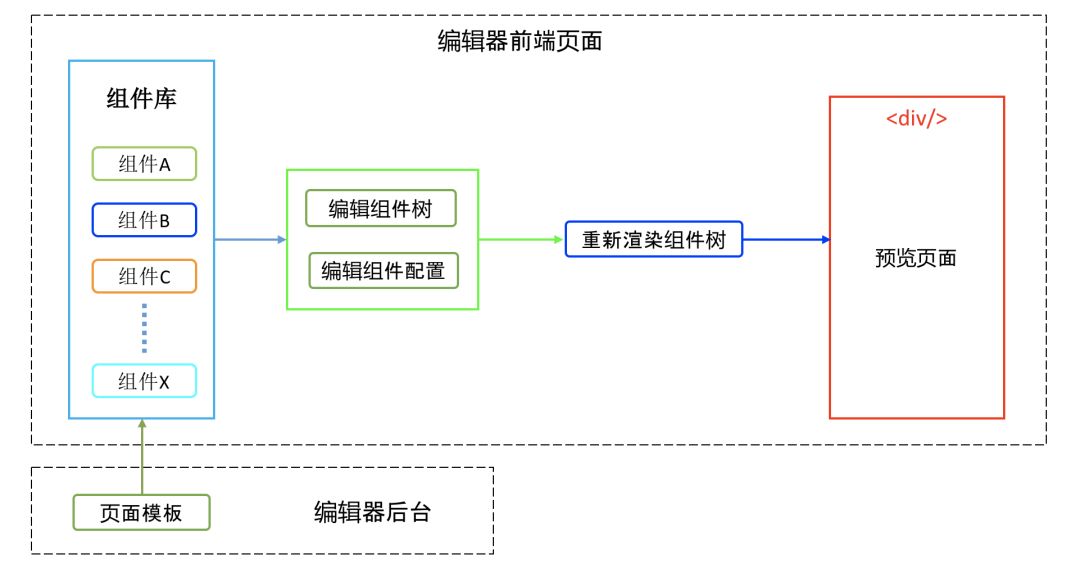 使用后台渲染的预览方式, 编辑器前端页面并不需要渲染组件库的组件; 甚至不需要组件源码, 只需知道各个