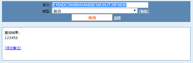 无盐密文:E10ADC3949BA59ABBE56E057F20F883E