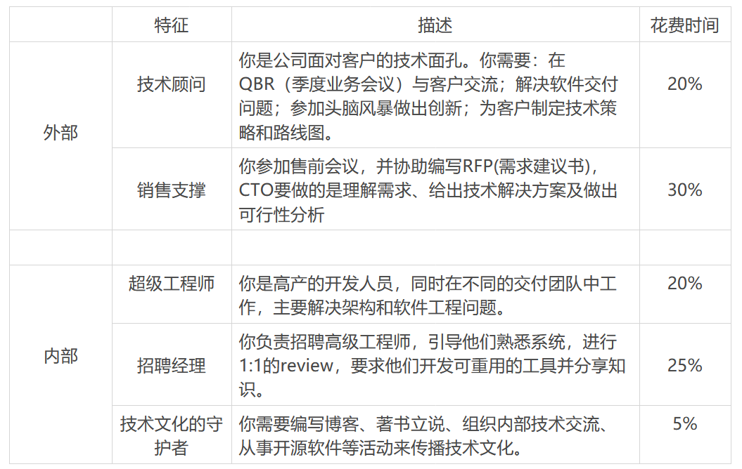 介绍 IT 服务组织 CTO 的文章并不多,也没有明确谁是你遵循的榜样,下面我将在 Matt 框架的基础上,结合自身情况,给出我对 IT 服务组织 CTO 的理解。