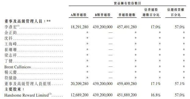 在持股方面,文件显示,李彦宏持股457491280股,占普通股总数17%,拥有57%投票权。