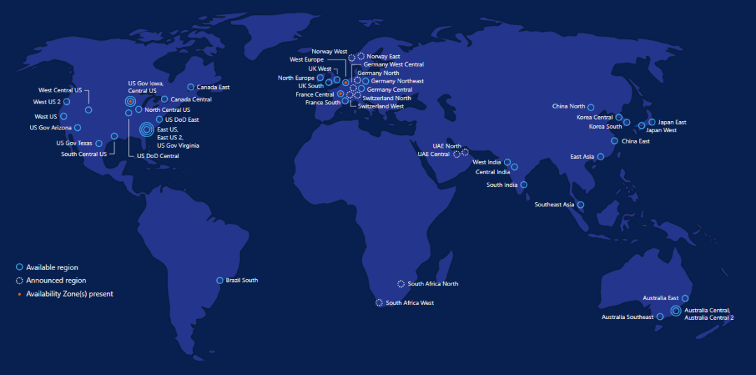 Microsoft Azure区域是一组部署在一定范围内的数据中心,并通过专用的区域低延迟网络连接。