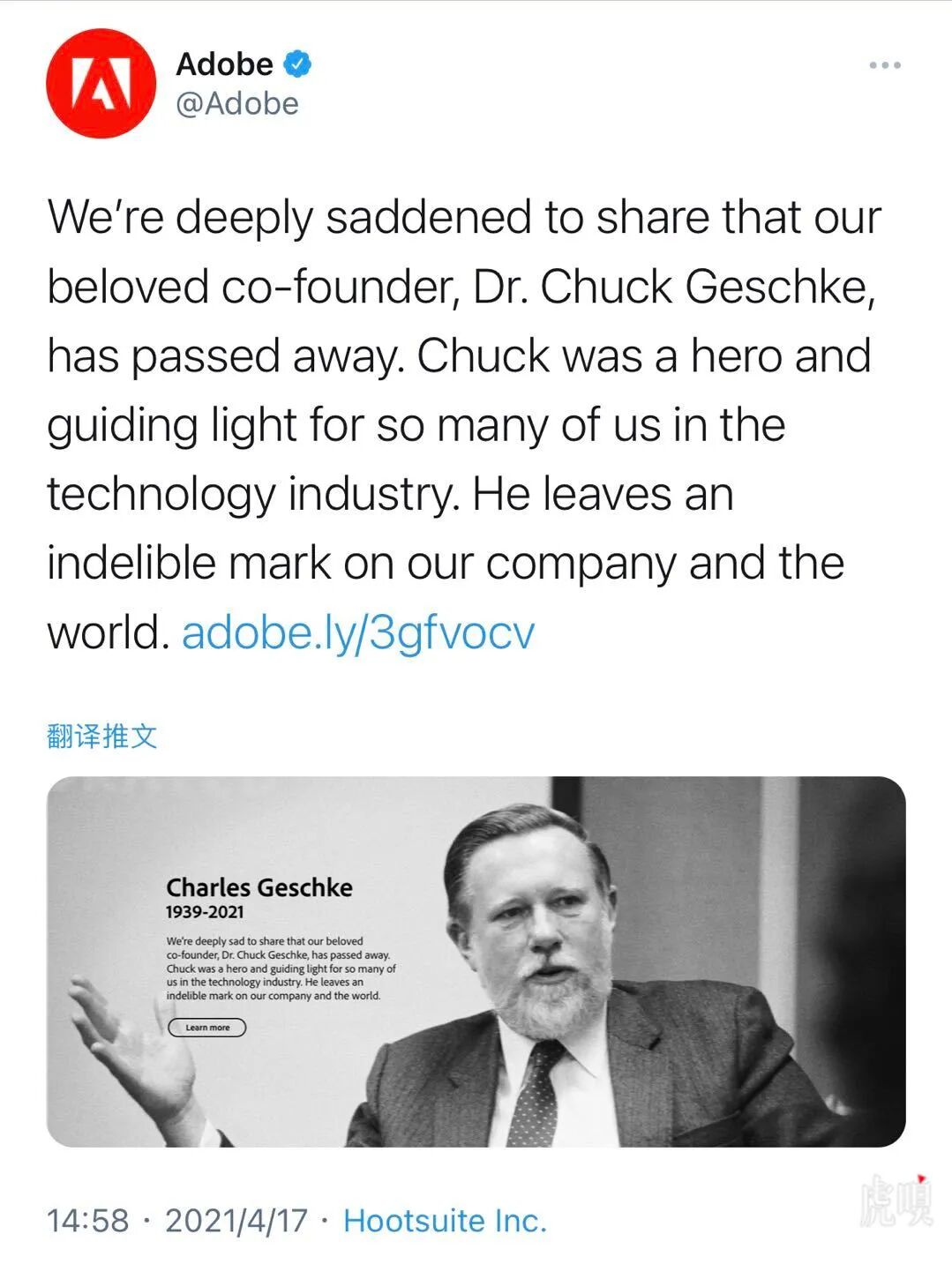 4月16日,Adobe公司的联合创始人Charles "Chuck" Geschke(查克·格施克)去世,享年81岁。1982年查克·格施克与约翰·沃诺克一起创立了Adobe公司,二人因开发了便携式文档格式技术即PDF而名满天下。2009年时任总统奥巴马授予了格施克和沃诺克国家技术奖章。