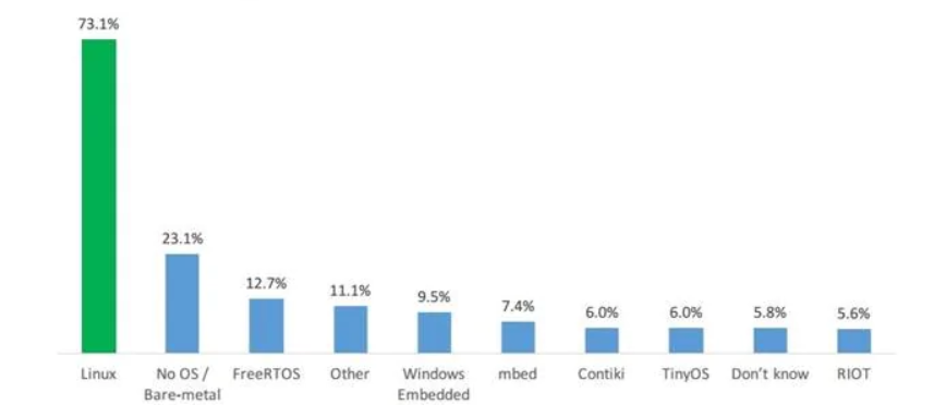 可以看到,Linux 主导着物联网的操作系统市场。该平台的一些特性,例如可靠性、可配置性、速度和低能耗适应性,使其最适合嵌入式设备。