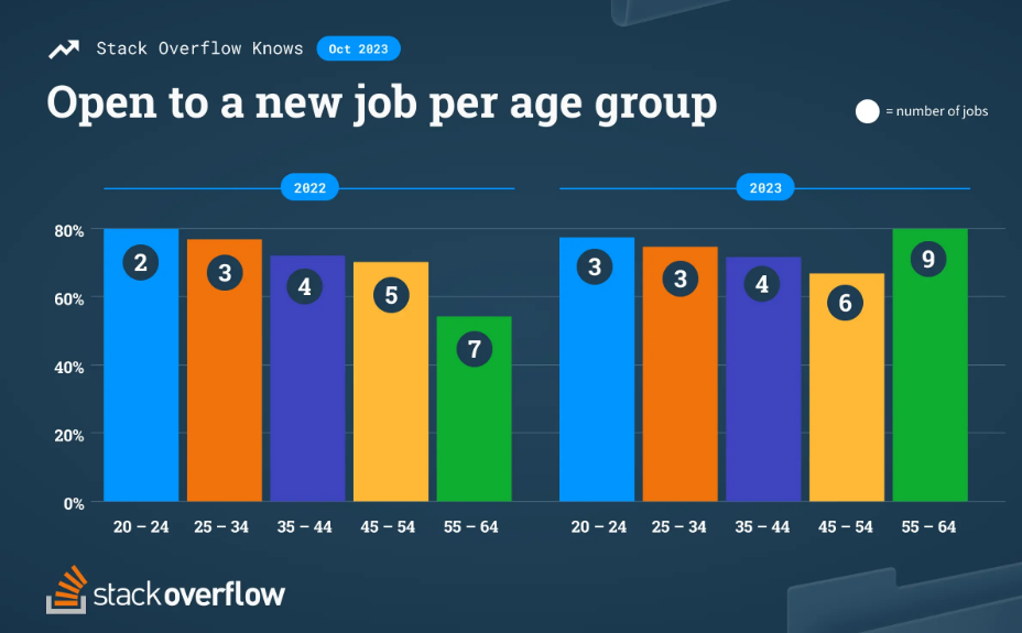 导读:Stack Overflow 的一项调查显示,无论是年轻的还是有经验的开发者越来越想考虑更换工作。近日,Stack...